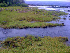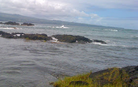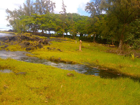 I went for a run in Hilo today and I came to this spot where I was last week. As a matter of fact I posted pictures last week of this spot. The difference though is that there no longer is a shaky little log for me to walk across. I thought, "i'll just jump", but it wasn't going to be that easy. It had rained in the morning which made the water higher and also made my jumping off point and landing target soaking and muddy. I started to get a little freaked out so I began to look around to see if there was another way. Then I saw a log in the distance, I ran over to it (in the mud) and brought it to the water. I was trying to eye measure the length of the log to see if it would make it across the water. I gave it a toss and it fell directly into the water and was swept out into the ocean. Now I was mad. I was like, "I'm doing this, I don't care if I fall in ." I took two long steps back and then sped forward like a long jumper and leaped over the water safely to the other side!