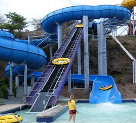 This couple almost didn't make it back onto the ship. I, personally, had to tell an officer that there were two passengers about to be left behind. They opened some door on the side of the ship. Here the passenger is handing a crew member a swimming noodle.I found these two pics of slides we actually went on! (I found them on Jeannie's blog: http://jeanniesobsessions.blogspot.com/)