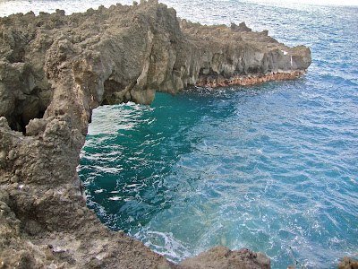 The rocks and black sand are the result of the waves crashing against volcanic rock for decades and decades.